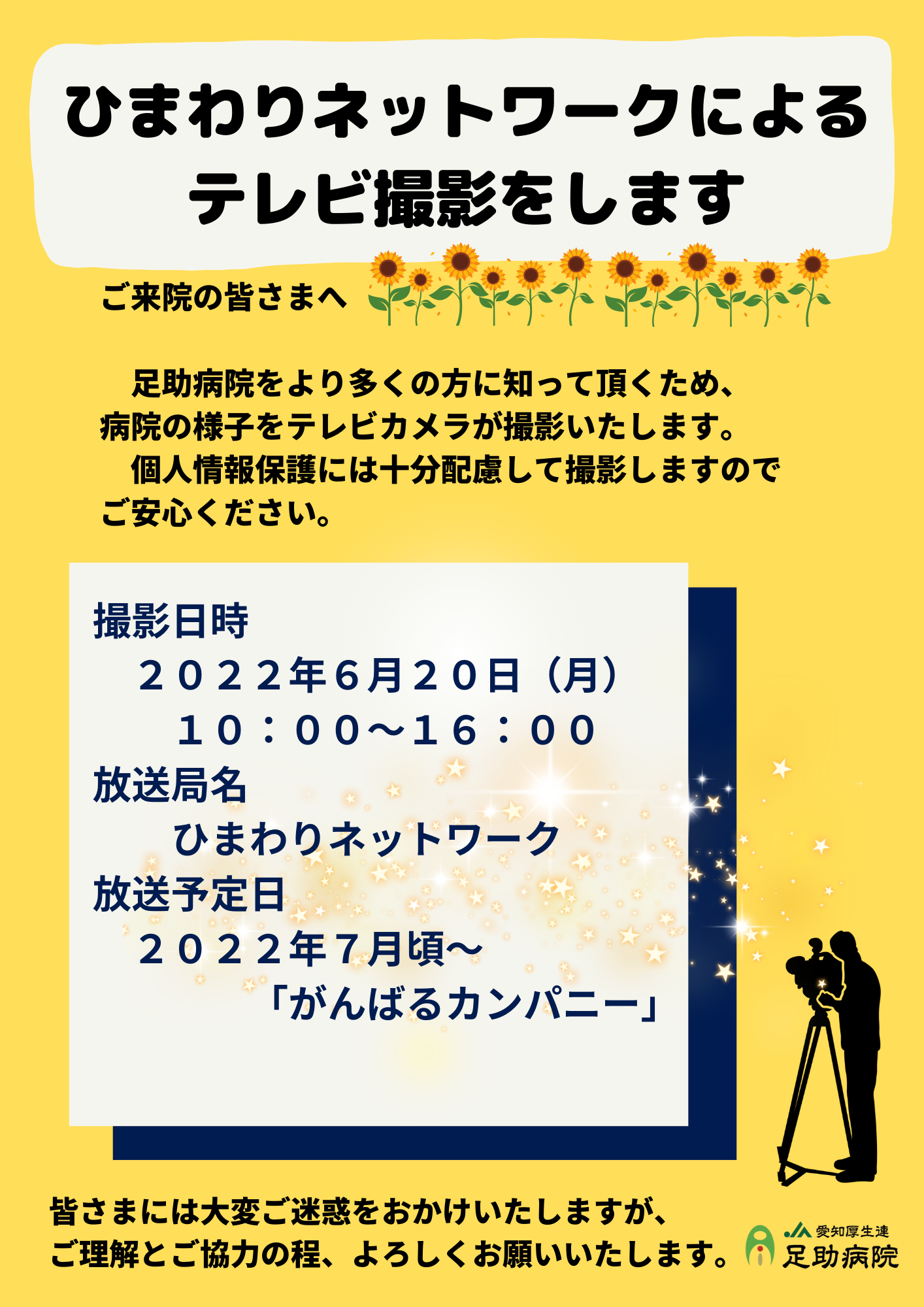 - 6月20日(月)ひまわりネットワークによるテレビ撮影を行います